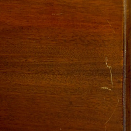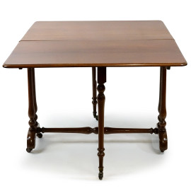 Tavolo a bandelle in noce, XX secolo, piano sostenuto da sei montanti torniti, cm h 71x103,5x89,5, (difetti)