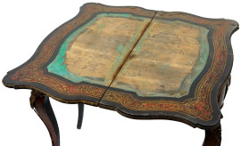 Tavolo da gioco stile Boulle, Francia, fine XIX secolo, cm 77,5x85,5x44, (difetti, mancanze)