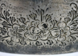Teiera in metallo argentato, decori floreali incisi, cm h 12x20, marcato L& W S EPBM sotto la base, (segni del tempo).