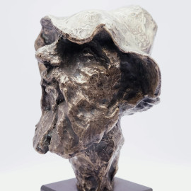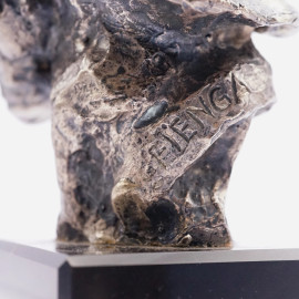 Testa d'uomo con cappello, scultura in argento 800 firmata Fienga, cm h 19, peso lordo gr 1277