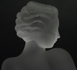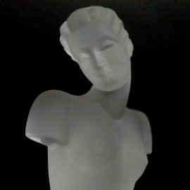 Torso femminile in vetro satinato, con base in vetro nero, prima metà del XX secolo, cm h 30 (compresa la base), lievi difetti