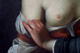 Maddalena dal seno scoperto, olio su tela, cm 132x97, entro cornice.