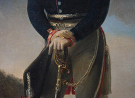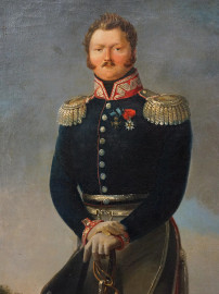 Ufficiale russo, olio su tela, cm 48x36,5, firmato e datato Desarnod 1820, entro cornice, (difetti)