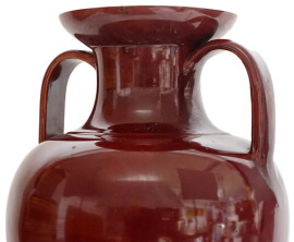 Vaso biansato in ceramica a smalto rosso, Nicola Fasano, Grottaglie, XX secolo, cm h 38,5, (difetti)