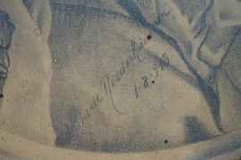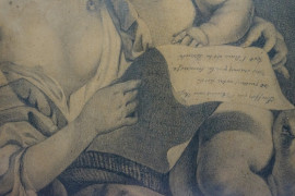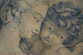 Venere e Cupido, disegno a matita su carta, cm 51x38,5, firmato, entro cornice, (macchie)