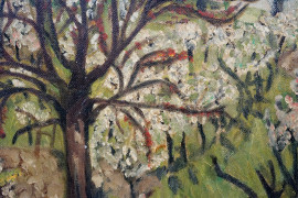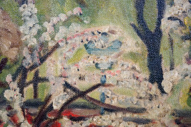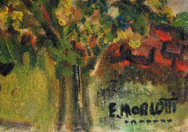 Alberi, olio su tela, cm 50x40, firmato, entro cornice (difetti)