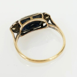 Anello in oro basso e argento con zaffiro e brillantini, misura n. 15, peso gr. 3,3