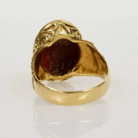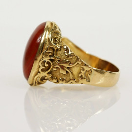 Anello in oro giallo 18 kt con corniola cabochon, misura n. 18, peso gr. 7,5