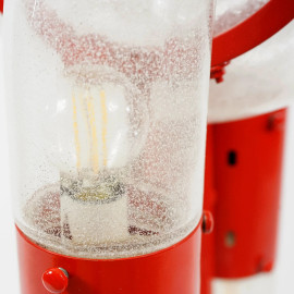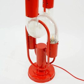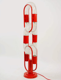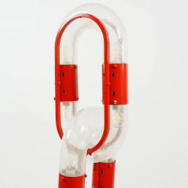 Attr. a Carlo Nason per Mazzega, Murano, anni '70, lampadario in vetro pulegoso, struttura in metallo laccato rosso, cm h 121, (lievi difetti sulla struttura metallica)