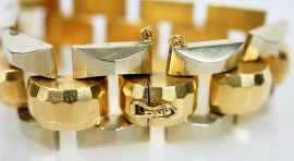 Bracciale tank in oro 18 kt, oreficeria Italiana, anni '40, peso gr. 46,4, (imperfezioni)