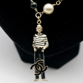 Chanel - Collezione crociera 2010, collana in finte perle e perline nere con cindolo Coco Chanel e monogramma, lunghezza da aperta cm 96,5, (segni di utilizzo)