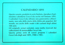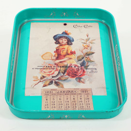 Coca Cola, Vassoio vintage in latta, raffigurante il primo calendario Coca-Cola del 1891, cm 28x21x3, (difetti)