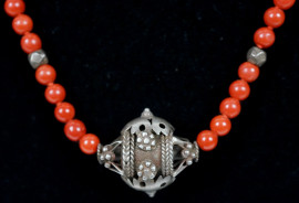 Collana di corallo e argento, lunghezza cm 70, peso gr. 22,6