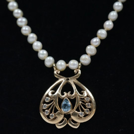 Collana di perle con cindolo e chiusura in oro giallo 18 kt, lunghezza cm 47