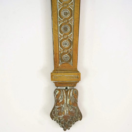 Coppia di appliques in bronzo a due luci, con fusto a faretra e bracci a volute contrapposte, sulla sommità un'urna "all'antica" decorata da ghirlande, cm h 63.5