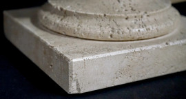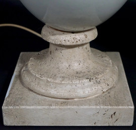 Coppia di lampade da tavolo anni '50, in porcellana bianca e travertino, cm h 56, (lievi difetti)