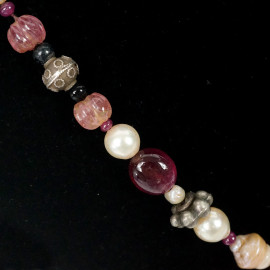 Due collane in pietre multicolore, di cui una con chiusura in oro 18 kt, lunghezza cm 51,5