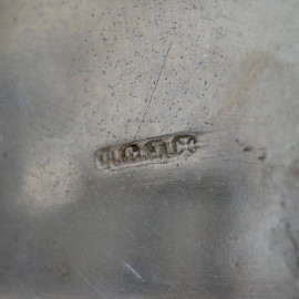 Due oliere in metallo argentato con ampolle e vaschette in vetro, manifatture diverse, altezza max cm 25, (difetti e mancanze)