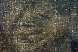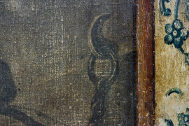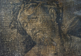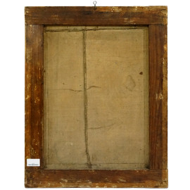 Ecce Homo, stampa su carta applicata su tela, cm h 80x63, fine XIX secolo, cornice dipinta, (difetti)