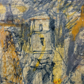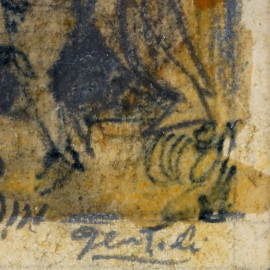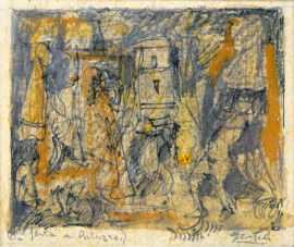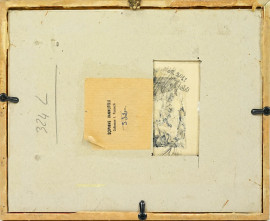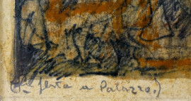 Festa a palazzo, tecnica mista su carta, cm 9 x 10,5, firmato, entro cornice
