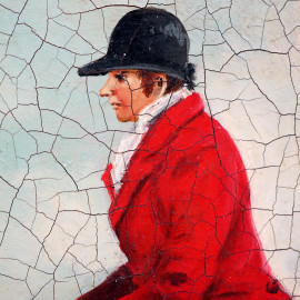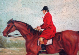 Figura a cavallo, olio su tela, cm 30x40, firmato, entro cornice