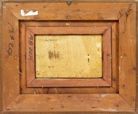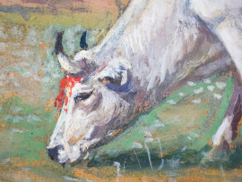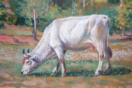 Mucca al pascolo, olio su tavola, cm 13x20, entro cornice