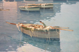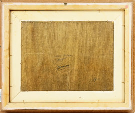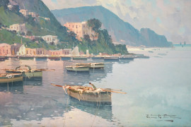 Paesaggio costiero napoletano, olio su tavoletta, cm 31x40, firmato, entro cornice.