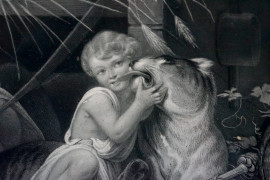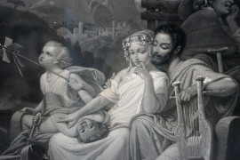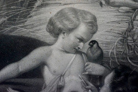 Jean Pierre Marie Jazet (Francia 1788 - 1871 ca.), L'Age d'Or, incisione da Frederic Henri Schopin (1804-1880), cm 82,5 x 117,5, entro cornice in stucco