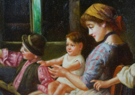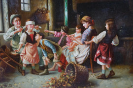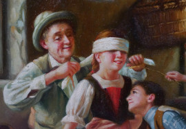 La moscacieca, olio su tavola, cm 30x39,5, firmato e datato, entro cornice