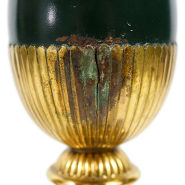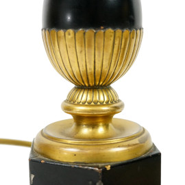 Lotto di due lampade da tavolo in metallo dorato e laccato nero e verde petrolio, alt.max cm 50, XX secolo, (lievi difetti)
