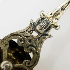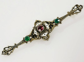 Lotto di due spille ed un ciondolo, realizzati in oro basso, argento e altri materiali, lunghezza max cm 7,8, (difetti)
