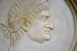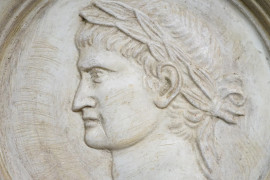 Lotto di quattro medaglioni in gesso raffiguranti profili di imperatori, diametro max cm 25.5, (difetti)
