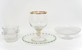 Lotto di quattro oggetti in cristallo e vetro, XX secolo, altezza max cm 27