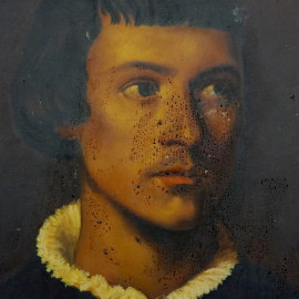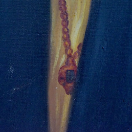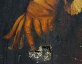 L'Uomo dal guanto, olio su tela, cm 100x70, copia da Tiziano Vecellio, XX secolo, (difetti sulla tela)