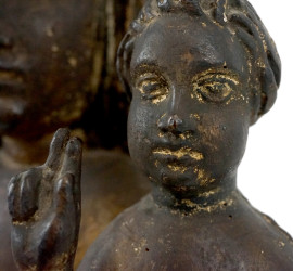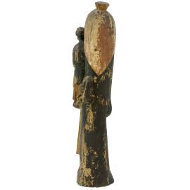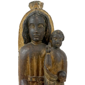 Madonna col Bambino, antica scultura in legno con tracce di policromia, cm h 94,5, (difetti).