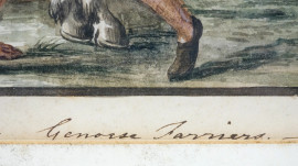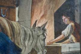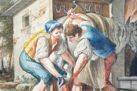 Maniscalchi di Genova, acquarello su carta, cm 30x40, firmato, entro cornice, (lievi difetti)