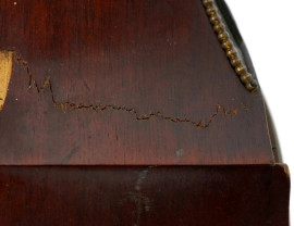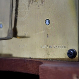 Orologio da muro in mogano, Union Stjernesund, XX secolo, quadrante circolare a numeri romani, ingombro 61x26, (difetti, meccanismo da revisionare)