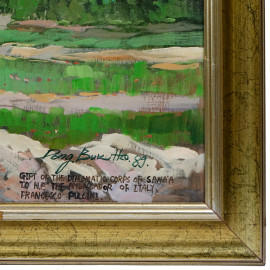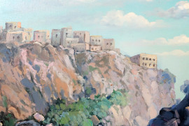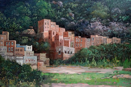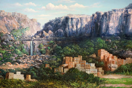 Paesaggio yemenita, olio su tela, cm 90,5 x 152,5, firmato e datato 1989, entro cornice