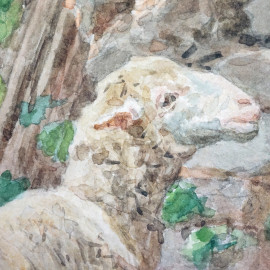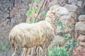 Pecora, acquarello su carta, cm28x20, firmato Laccetti, entro cornice