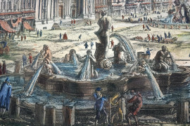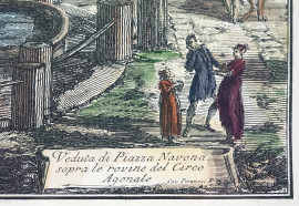 Piazza Navona, stampa acquerellata, cm h 65x85, XX secolo, entro cornice.