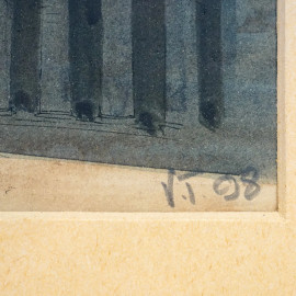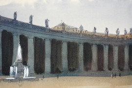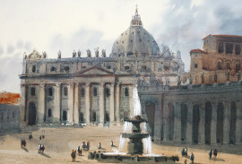Piazza San Pietro, acquarello su carta, cm 22,5x45 circa, siglato a matita VT in basso a destra, entro cornice.