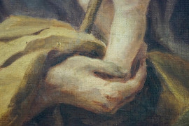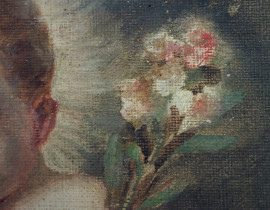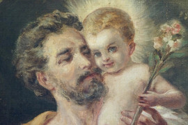 Pittore attivo nella prima metà del XX secolo, San Giuseppe col Bambino, olio su tela, cm 24,5x19