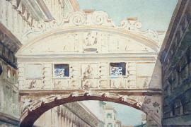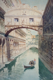 Ponte dei Sospiri, acquarello su carta, cm 30,5x14,5, firmato, entro cornice, (difetti)