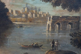 Ponte rotto e l'isola tiberina, olio su rame, cm 24,5x33, firma a tergo, entro cornice, (difetti)