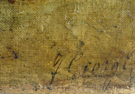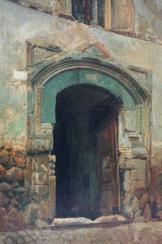 Portale a Verona, olio su tela, cm 60,5x43, firmato F.Giorgi, (difetti)