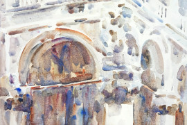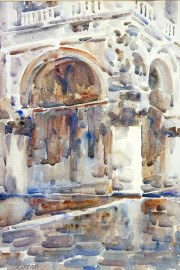 Portico, acquarello, cm 48x39, firmato, entro cornice.