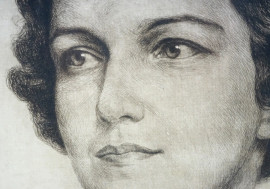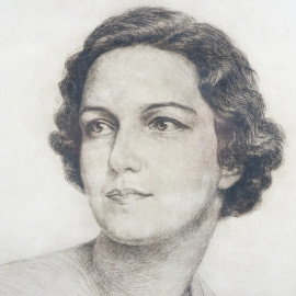 Ritratto di donna, acquaforte su carta, cm 61x42, recante firma a retro Enrico Arcioni, entro cornice, (difetti)