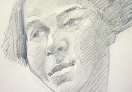 Ritratto di donna, disegno a matita su carta, cm 28,5x19, XX secolo, entro passpartout.