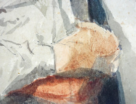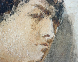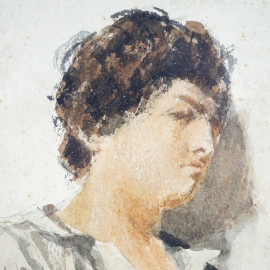Ritratto di ragazzo, acquarello su carta, cm 26,5x14,5, firmato in basso a sinistra, entro cornice