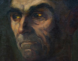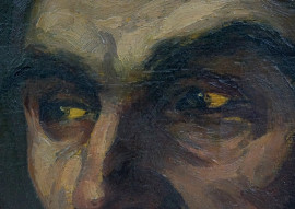 Ritratto di uomo, olio su tavola, cm 43,5x36, firmato Castellucci, entro cornice.